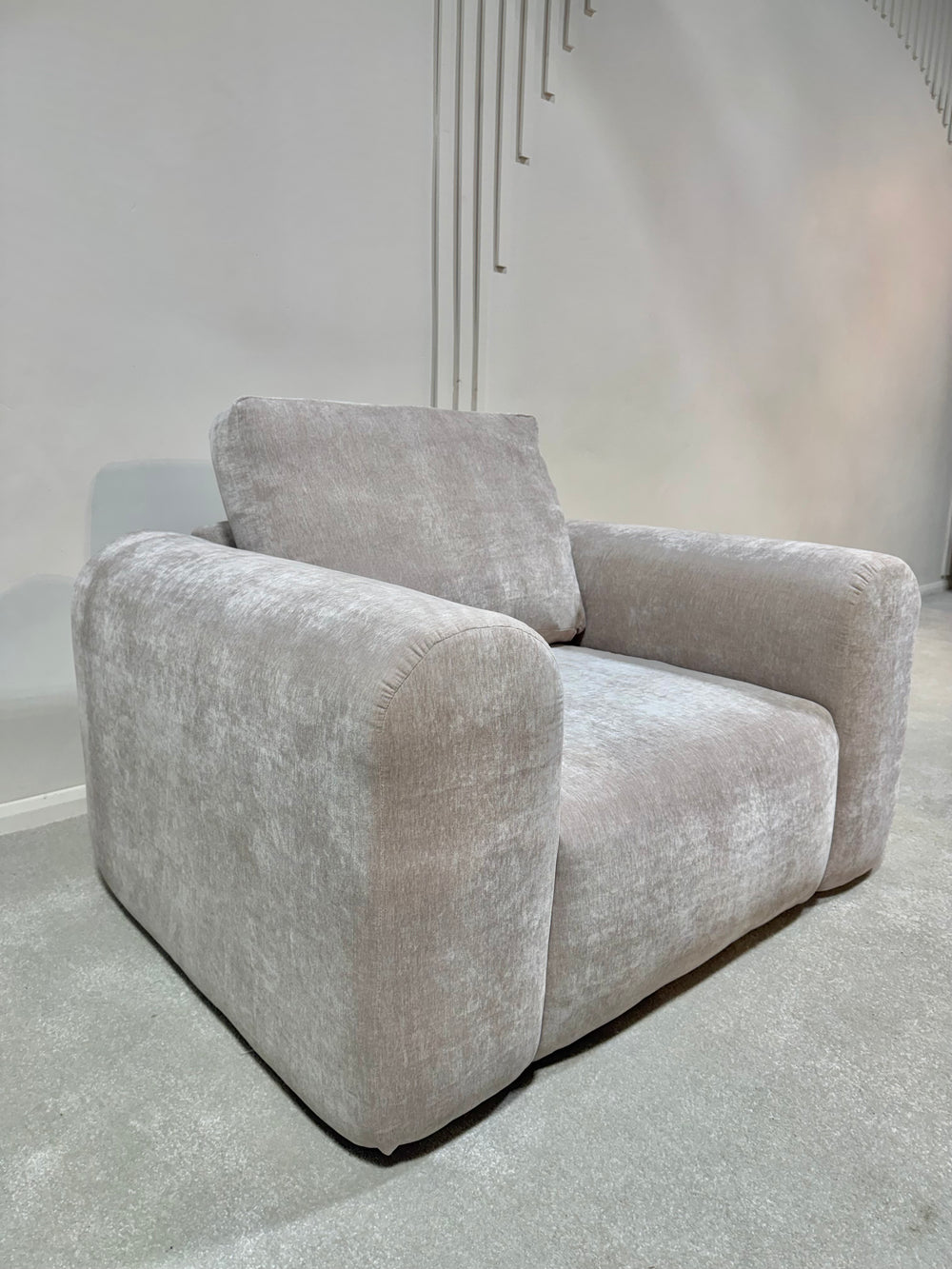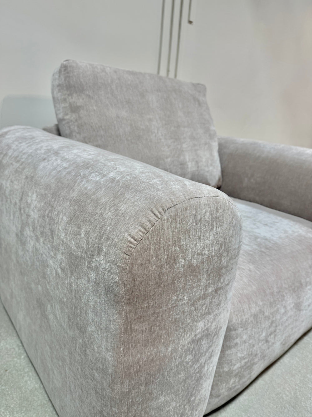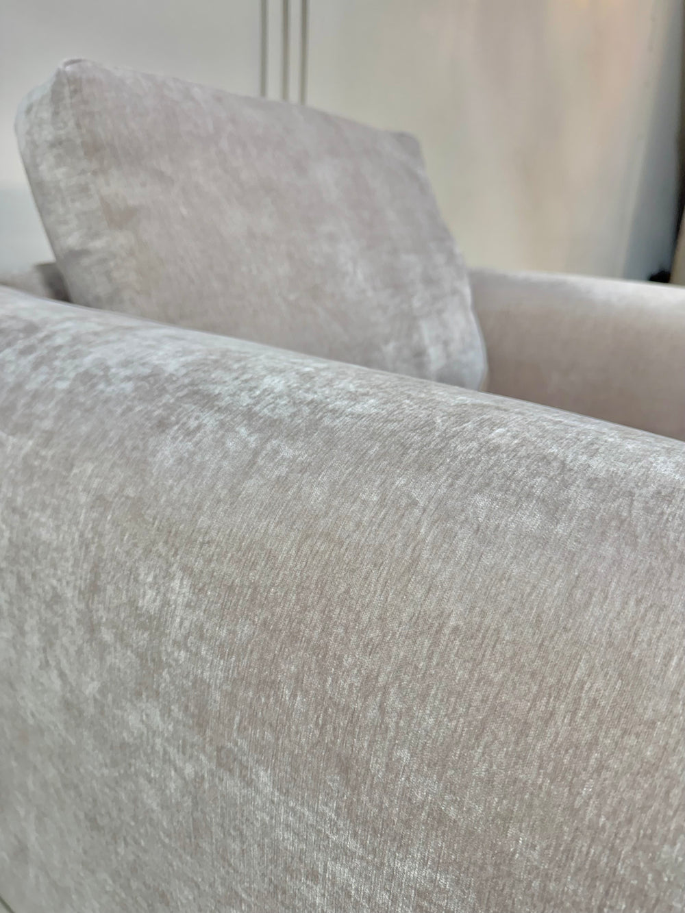 Upholstered in a luxuriously soft velvet/chenille-like fabric, the sofa has a subtle, tactile finish that catches light beautifully while remaining warm and matte to the touch. The fabric’s gentle texture adds depth and richness without overpowering the clean silhouette, making Brooklyn equally suited to minimalist interiors and layered, lived-in spaces.