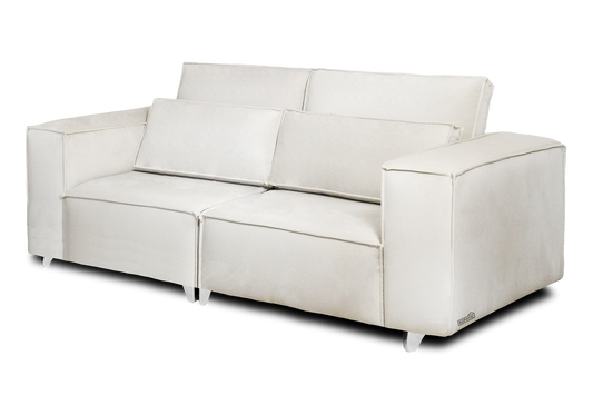 Featuring dual fullback cushions for optimum support, sleek chrome legs for a modern touch, and flanged edges for a tailored look, this piece exudes sophistication.