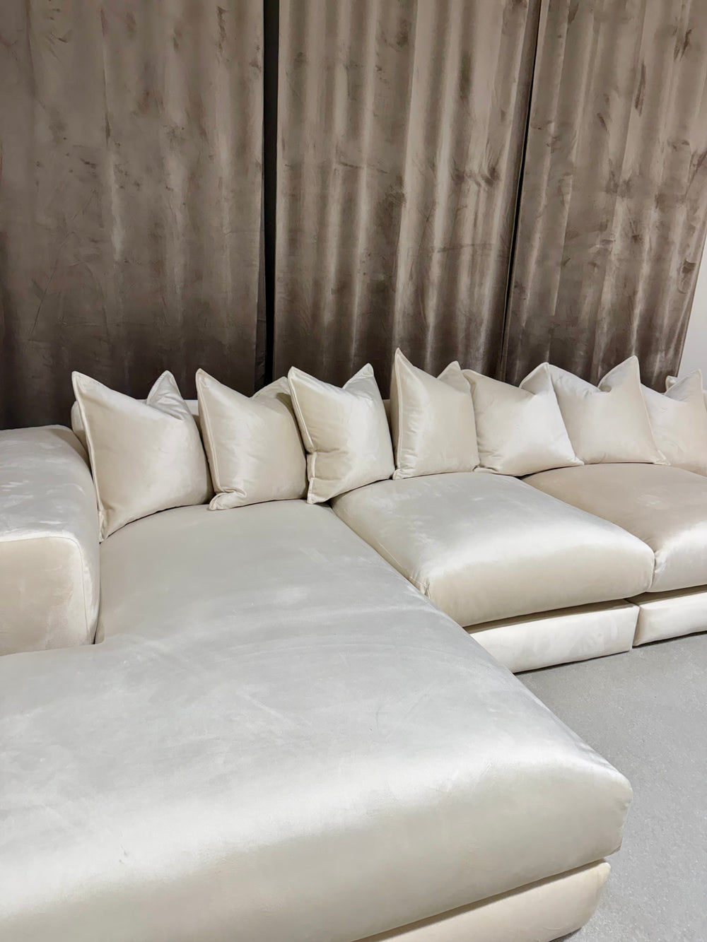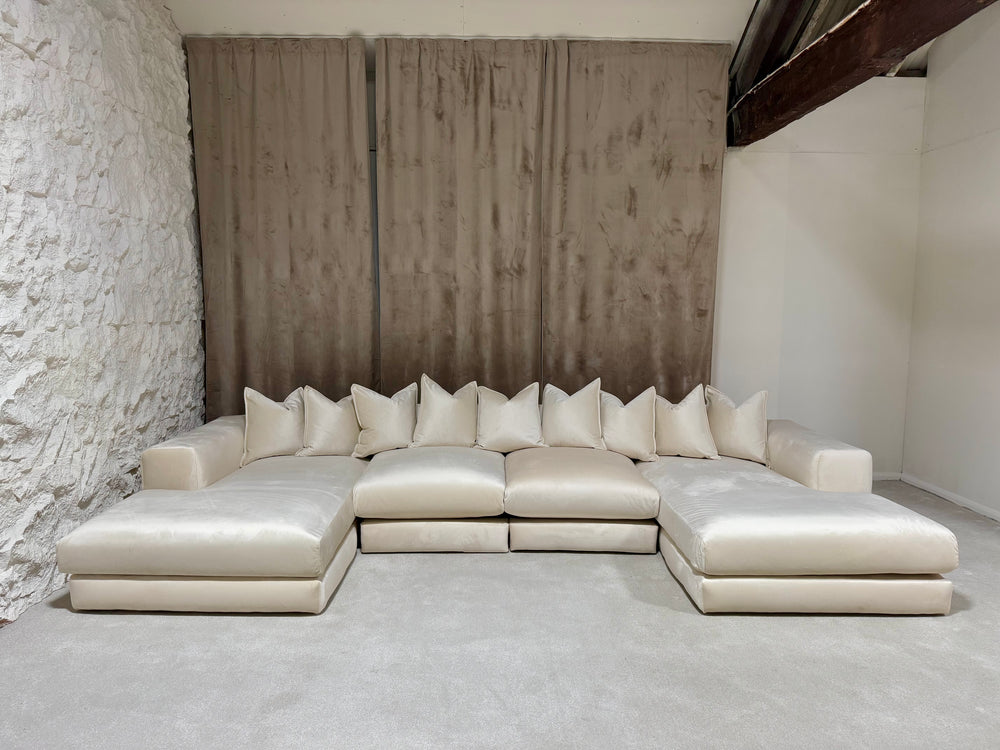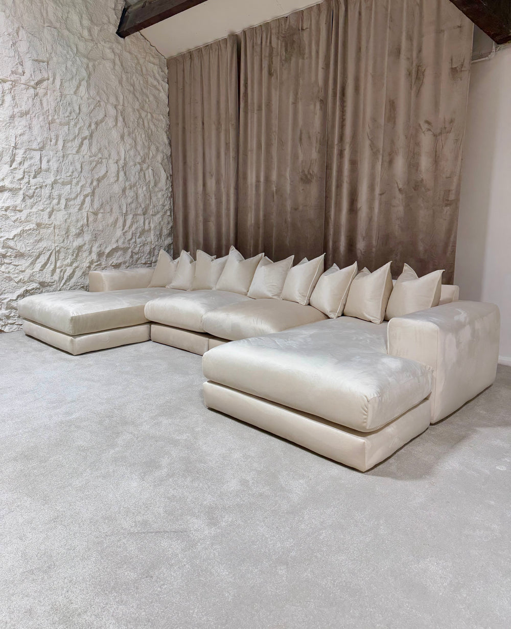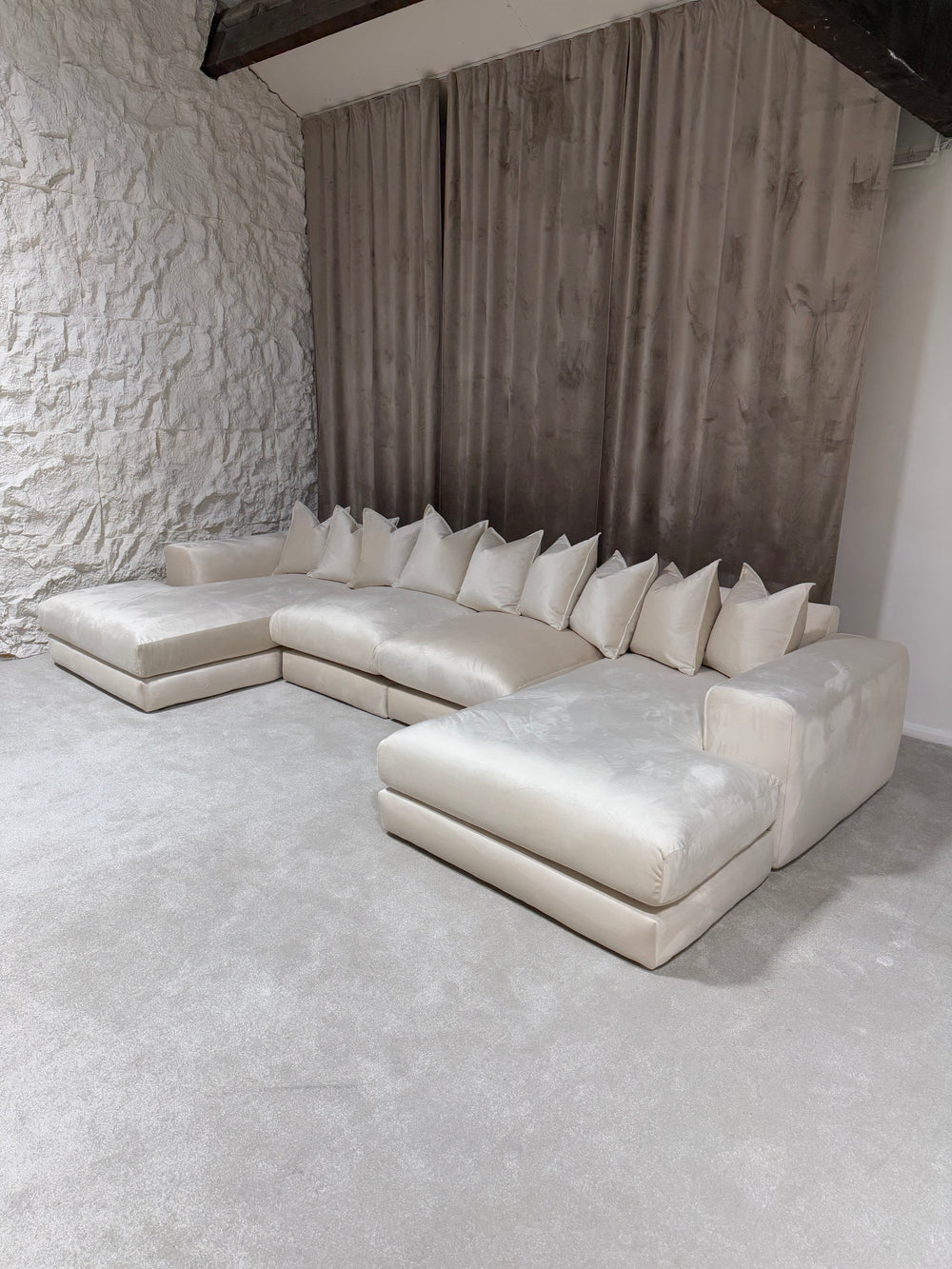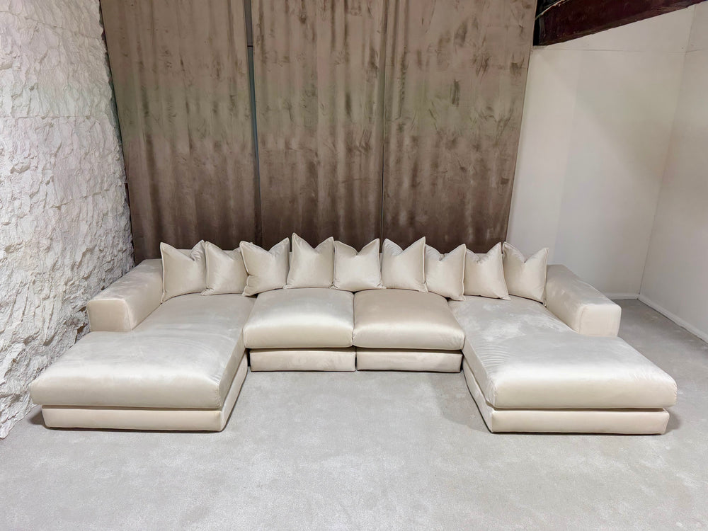 Upholstered in luxuriously soft plush velvet, Sydney offers a rich, tactile finish with subtle depth and light reflection, enhancing its sculptural form. The expansive U-shape creates an inviting, lounge-like experience—perfect for family living, entertaining, or simply stretching out in comfort.